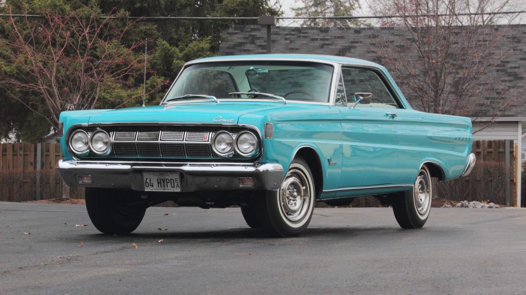In seventh place is the 64 Mercury Comet Cyclone powered by a 289 engine—a mid-year option—with 10.0:1 compression, 210 horsepower, and 300 lb-ft torque.