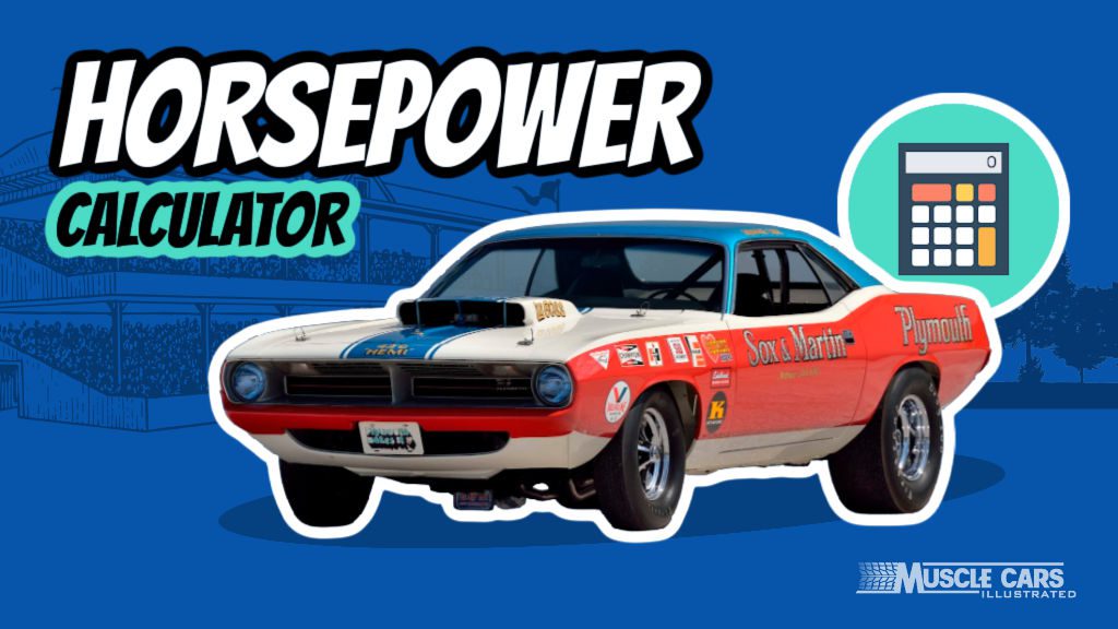 Our horsepower calculator estimates how much horsepower your muscle car makes, considering the vehicle’s weight and 1/4 mile elapsed time.